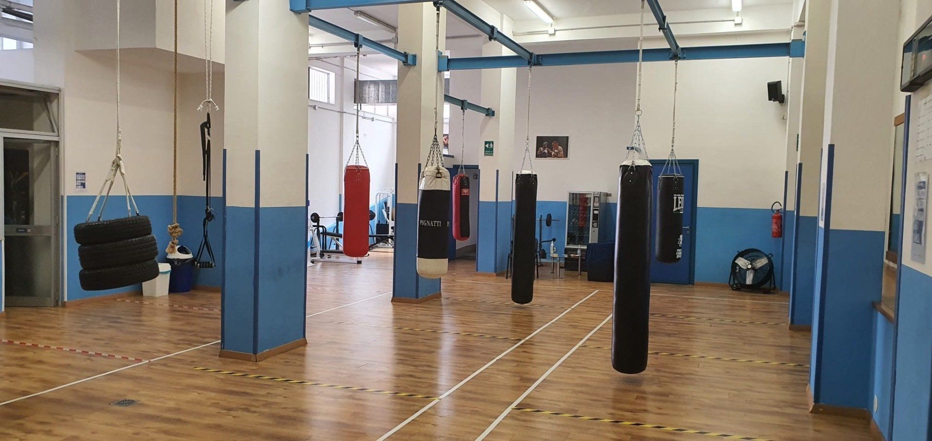 La sala è dotata di ring, sacchi da boxe, pesi ed attrezzature sportive per fornire ad ogni atleta una preparazione completa.